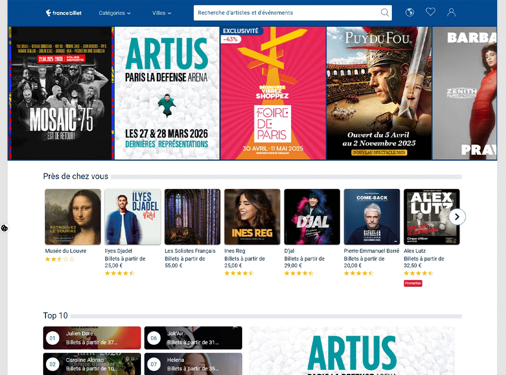 - + de 3 000 sites partenaires dont Fnac Spectacles, Billet Réduc, Eventim.fr, FranceBillet, le JDS…etc